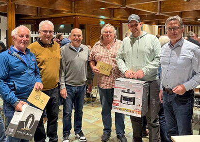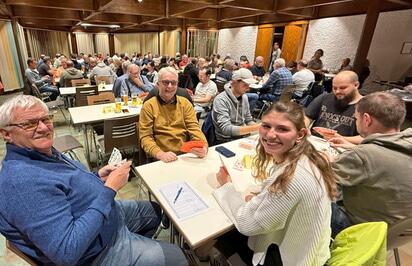 Am vergangenen Freitag hat sich erneut bestätigt, dass der jährliche Preisbinokel der Bürgerstiftung große Anziehungskraft hat. Die Teilnehmerin mit der weitesten Anreise, Romy Michelbach aus Tübingen, hat zwar Nordheimer Wurzeln und das Binokelturnier natürlich mit einem Besuch bei der Familie verbunden, aber auch ohne verwandtschaftliche Beziehungen waren Binokelfreunde z.B. aus Langenburg, Schwäbisch Hall, Schwarzach oder Möckmühl angereist.