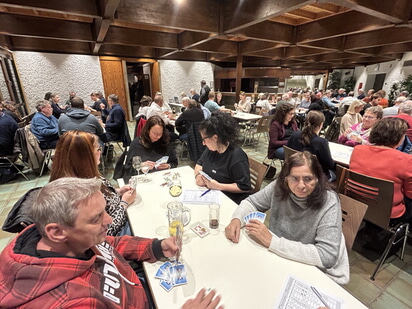 Am vergangenen Freitag hat sich erneut bestätigt, dass der jährliche Preisbinokel der Bürgerstiftung große Anziehungskraft hat. Die Teilnehmerin mit der weitesten Anreise, Romy Michelbach aus Tübingen, hat zwar Nordheimer Wurzeln und das Binokelturnier natürlich mit einem Besuch bei der Familie verbunden, aber auch ohne verwandtschaftliche Beziehungen waren Binokelfreunde z.B. aus Langenburg, Schwäbisch Hall, Schwarzach oder Möckmühl angereist.